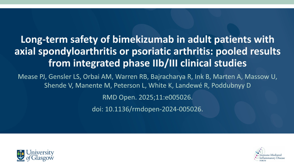 Mease et al. found that bimekizumab demonstrated a favourable long-term safety profile in patients with axSpA and PsA.